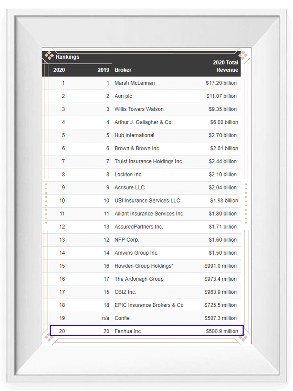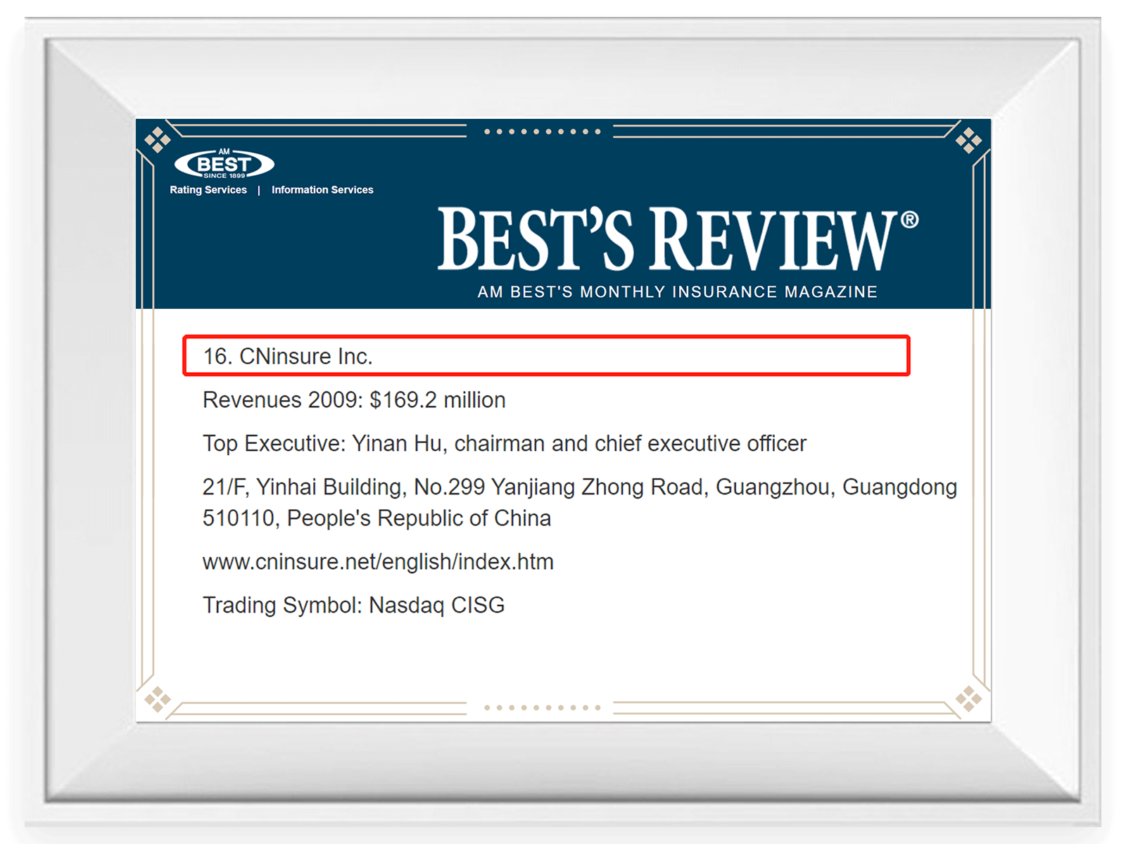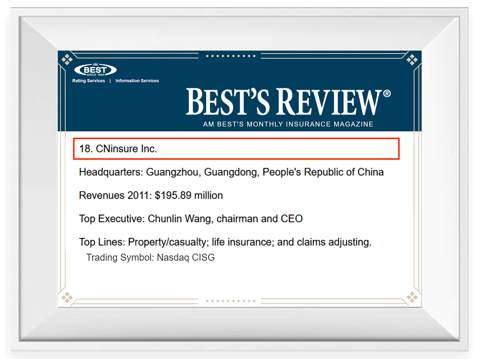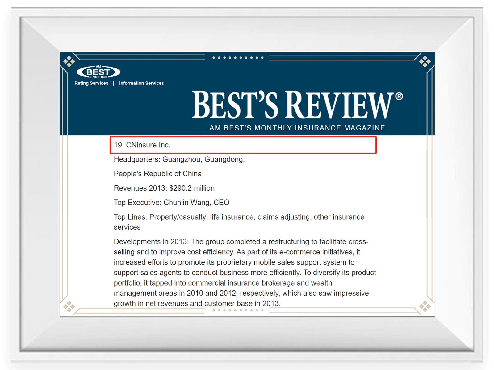 泛华被著名评级机构贝氏公司评为全球前20大保险经代公司(连续四年、亚洲唯一入选)
