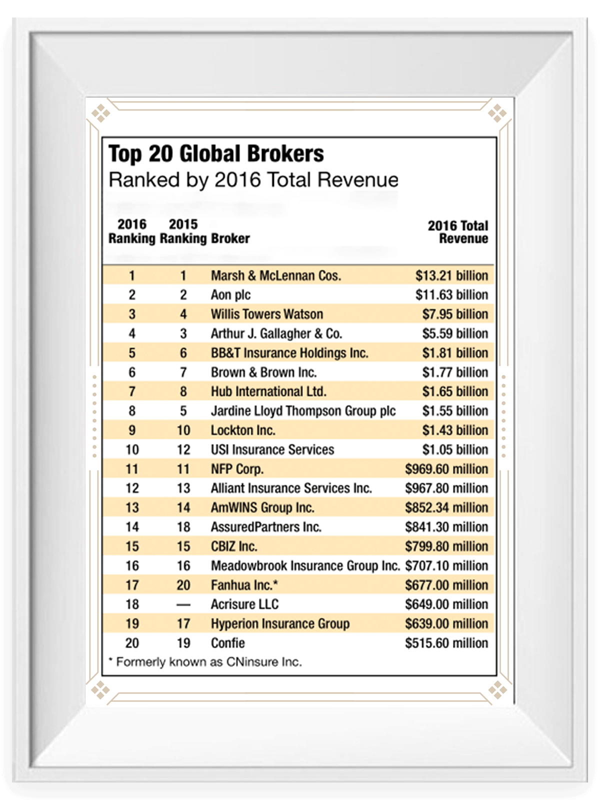 泛华入选贝氏评级“全球20强”保险经代公司,位列第16位