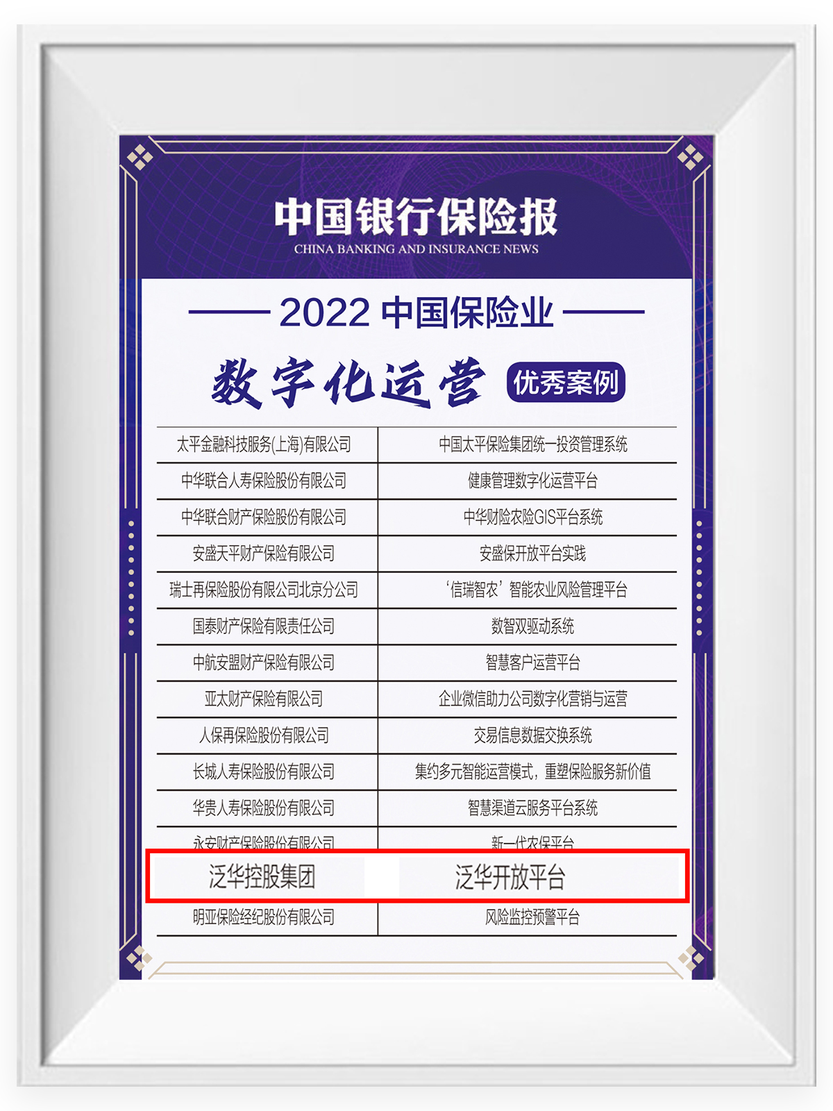 泛华开放平台荣获“2022中国保险业数字化运营优秀案例”