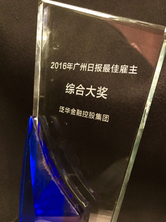 2016年12月3日,“中国(广东)人力资本管理大会暨2016广州日报最佳雇主”颁奖典礼在广州举行。泛华金融控股集团(以下简称“泛华金控”)凭借独特的用人制度和利益分配制度,从近百家优秀入围企业中脱颖而出,一举摘得2016年度“最佳雇主综合大奖”。