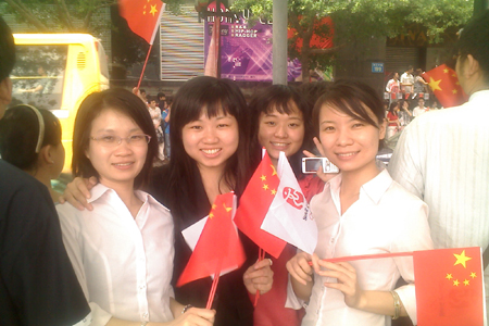 5月7日下午2点半,奥运圣火由广州市的北京路传递到天字码头站,为了迎接奥运圣火的到来,并见证这一重要历史时刻,泛华保险服务集团总部全体员工手拿奥运五环旗和国旗,在人力资源部组织下早早地来到了天字码头站,为中国奥运加油。