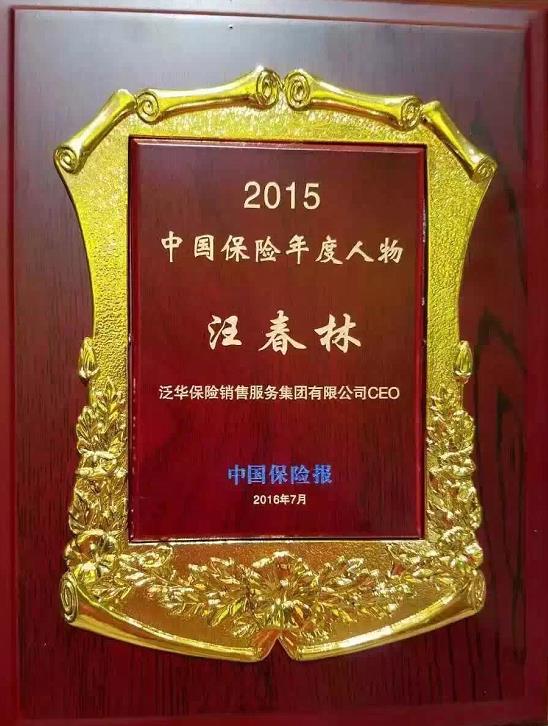 泛华CEO汪春林先生荣获“2015中国保险年度人物”奖牌