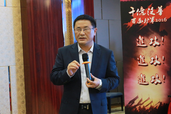 誓师大会期间,各省机构负责人还纷纷就当地亮点成绩进行了经验分享。山东分公司总经理任勇对聊城、烟台、济南等地区公司发展特色深入分析,强调了说话之道、上下同欲、格局与愿景等方面的重要性;广东南枫分公司总经理刘耀东阐述了建立督导体系推动全金融转型的必要性,并提出了“保险创客梦,泛华万家店”的万店宣导主题;四川分公司平台培训总监钟毅则以成都市区产险发展为脉络,述求全面金融业务拓展;陕西分公司副总经理杨华围绕掌中保,点出人力增员加速的秘诀;安徽分公司总经理李雪山分享了近期筹备平台工作。