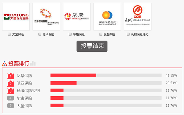 据悉,本次评选从10月开始,通过网友投票和专家团评审形式进行,共设有十二大类共计30余个奖项。其中,网络投票每个IP地址重复投票无效。经过1个多月的网络投票,泛华保险以41.18%的投票排名,名列保险中介行业第一位。(来源:)
