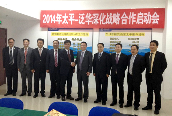 3月27日,泛华保险销售集团与太平财险在山东联合召开2014年全面深化战略合作全国启动会。泛华集团CEO汪春林与太平财险陈锦魁总经理达成高层战略共识,表示将在双方友好合作的基础上向纵深推进,并就下阶段深化战略协同、实现合作目标向双方对口合作机构作出了全面的部署。
