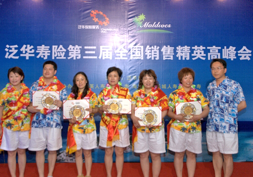 在马尔代夫康杜玛岛的落日餐厅,映衬着海浪击岸的声音,当地乐队演奏出一曲火辣热烈的开场乐。第三届泛华寿险销售精英高峰会拉开帷幕,寿险集团副总裁刘全杰致开幕词并宣读了嘉奖令。泛华寿险高峰会是泛华寿险荣誉体系中最高级别的盛会,获得高峰会奖励是寿险代理人最高荣誉。本届高峰会对在2010年业务价值和业务品质表现卓越的代理人进行了表彰,包括年度业务标兵、年度件数标兵、年度十佳创业团队、全国新秀创业团队和感动泛华人物在内等五大类别奖项的60个获奖者。颁奖典礼之后,泛华集团副总裁、泛华联兴董事长兼CEO金锋做了题为《泛华明天会更好》的主题报告。报告中,金总扼要地介绍了寿险五年来的组织变革和业务发展情况,重点对2011年关键年的业务发展规划做了阐述。
