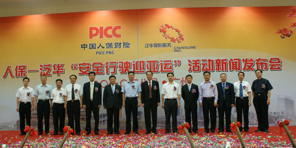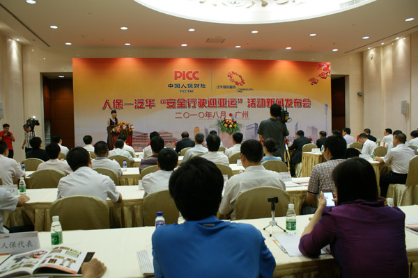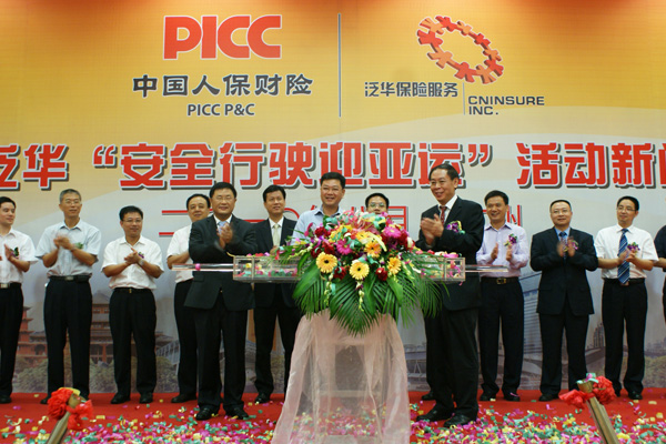 2010年8月2日,中国人民财产保险股份有限公司(以下简称“中国人保”)与泛华保险服务集团(以下简称“泛华”)在白云国际会议中心举行了“安全行驶迎亚运”启动仪式, 中国保险监督管理委员会广东监管局副局长江裕棠,中国人民保险集团股份有限公司广东省公司相关负责人,泛华保险服务集团泛华集团胡义南董事长出席仪式并分别做出重要讲话。