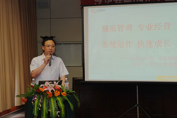 在报告中,焦总指出,面对泛华寿险的快速发展,我们需要探索出一条独具特色的发展道路,需要统一思想、统一认识,并在规范管理的框架之内,实现业务的进一步突破。焦总重申了严格、规范的管理对企业做大做强的重要性,并对泛华的系统运作推进以及营销基础管理指明了方向与执行的思路。为了更好地开展2009年下半年的工作,焦总明确了下半年的工作目标及工作措施,拉响了寿险“千创计划”与“春雷计划”的号角,号召各省齐心协力,通过明确的管理体系与科学的管理方法,不断提升团队管理与经营能力,实现人力与业绩的快速增长。