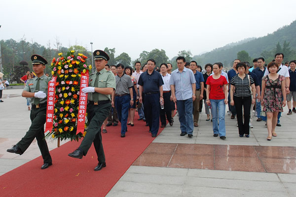 在韶山会议的尾声,与会代表们来到毛泽东广场,向毛主席铜像敬献花篮,以缅怀这位为中国之崛起做出卓越贡献的伟大领袖。