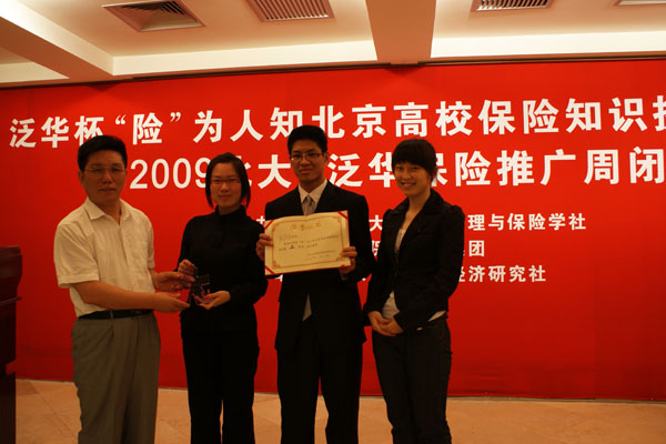 泛华集团葛蓬副总裁为北京大学保险•梦之队颁发一等奖