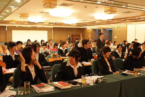 据了解,为了考察选手的知识面、应变能力以及团队合作精神,挑战赛的决赛设置了抢答及案例析等环节。其中,抢答题涉及到了与生活相关的保险基础知识;案例分析则选择了涉及保险金分配、保险合同效力、受益人定义和权利等多方面内容的经典题目。来自北京4所高校的团队无论是在抢答,还是在高难度案例分析中均应变自如,在专业评委老师的提问中对答如流,展现了很高的专业素养、极强的应变能力及团队合作能力。比赛过程高潮迭起,而由于案例多涉及目前保险业内尚有争议的话题,评委老师甚至是来自媒体的嘉宾也对案例中的问题各抒己见,现场氛围及其热烈。案例分析中选手条理清晰的陈述、对专业概念的准确界定和自信镇定的表现、激昂而又幽默的陈述也引来场下观众阵阵喝彩与掌声。