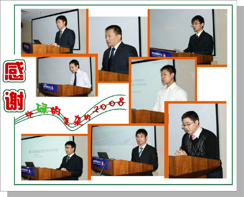 面对成绩,主管副总裁金锋指出,2008年已经过去,泛华集团仍然处于方兴未艾的阶段,作为开拓者,仍面临着诸多困难和挑战。面对一张张年轻的面孔,金总指出,部门负责人一定要继续加强组织能力建设和团队建设,增强协同合作的能力,并要勇于承担责任,“想事情,干事情,并干成事情”,为机构发展着想,为机构的需求着想。而对于还在发展中的部门员工,金总则表示,每个人无论岗位大小,都要勤勉尽责,并志存高远,泛华的舞台永远都会留给努力的人。