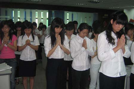 慰问中,胡义南董事长深情感慨,地震发生后,泛华集团上下密切关注四川灾区情况,担心四川人民、担心泛华伙伴、家属及客户的安危,特别是泛华都江堰100多人的团队、 5.12地震当天正在震中——映秀镇展业的3名代理人。震后每一天,集团都在第一时间了解四川最新情况、四川泛华伙伴的最新情况。灾情发生之后,看到泛华员工如此勇敢、乐观地面对灾难,泛华感到无比的骄傲和自豪,胡董表示,灾难无情,人有情,泛华集团永远是你们最坚强的后盾,泛华就是你们的家。在胡董的倡议下,全体与会人员双手合十为遇难同胞默哀1分钟。