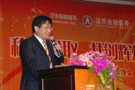 胡董致辞回顾了泛华具有里程碑意义的一年。在这一年里,泛华保险服务集团成功登陆美国NASDAQ市场,打通了对集团发展起决定作用的财富实现通道,集团借助国际资本市场力量做强做大的理想变成现实。在这一年,泛华金融服务集团也取得了长足进步,在全国17个重要城市成为金融外包行业的领先者,零售贷款规模更是达到120亿的新高点。在这一年,泛华与上海普益财富管理公司达成独家股份购买权协议,泛华理财业务平台即将诞生。面对中国金融业的大好前景,胡董坚定地表示泛华的明天会更好。在场所有人从领导到员工无不倍受鼓舞、感慨万千。