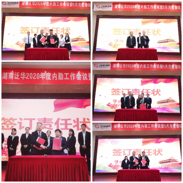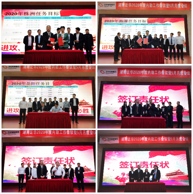 最后,会议在2020年度责任状签订及五月誓师启动大会中圆满结束,湖南泛华总经理室与各地市子平台负责人签订了年度目标责任状,各地市平台长带领所辖管理团队发表了慷慨激昂的行动誓言,不破楼兰终不还,不达目标不罢休!湖南泛华总经理成辉旗先生做领导训勉,成总用自己发自肺腑的讲话向现场150余名管理干部所代表的全省1万2千余名泛华湘军发出2020冲锋号令:改革创新,戮力前行创佳绩,决战2020!!!
