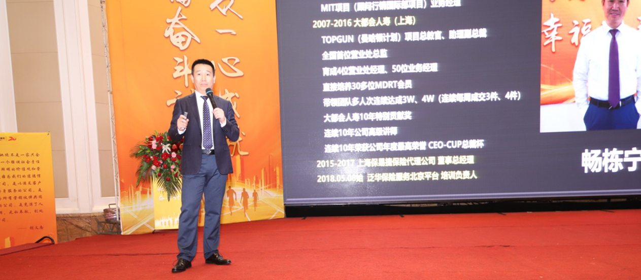 “保险大移民,有梦你就来”泛华保险销售服务集团副总裁兼山东平台任勇总也带来精彩报告,他从行业大势的剖析到幸福奋斗计划的解读,丝丝入扣的演绎让全场创业精英备受鼓舞,幸福奋斗计划传承了泛华大爱,希望通过幸福奋斗计划帮助创业者实现财富梦想、实现保险从业者行业贵族地位。