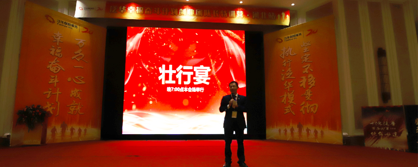 伴随着激昂的音乐声,本次特训营渐入高潮。河北平台营销总监王浩总为此次特训营做结训。他激励大家要发扬泛华人不为艰险、奋发图强的优良传统。千亿泛华,指日可待!幸福生活,从此开始!