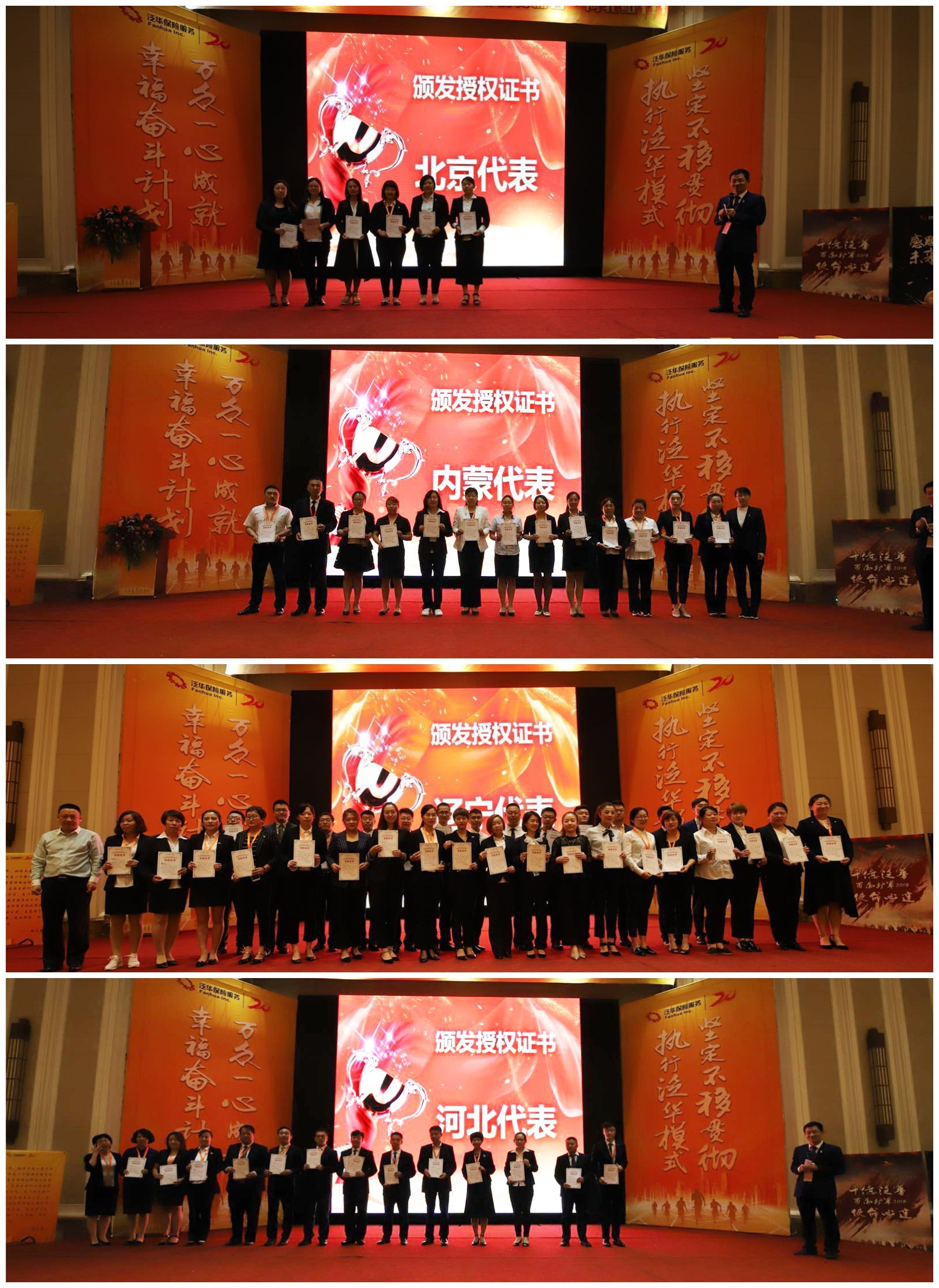 为响应集团号召,2018年8月26日,河北平台举行了“泛华幸福奋斗计划创业团队长特训营”会议。来自北京、河北、辽宁、内蒙古,四地近300位创业团队长齐聚燕赵大地,一起共谋幸福大业,本次会议受到了泛华保险服务集团的高度重视和大力支持,泛华保险销售服务集团总裁刘力冲、泛华保险销售服务集团副总裁兼山东平台任勇、辽宁平台总经理董研、北京平台总经理李颖、内蒙古平台总经理陈凤玲、河北平台总经理寇超、营销中心营销部处经理陈旭、营销中心培训部处经理佘璞豆等领导莅临现场。