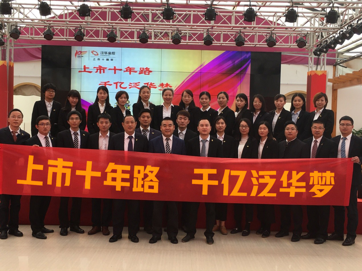 十年易春秋,风华正茂;十年载耕耘,硕果累累。值此泛华集团上市十周年之际,泛华金控安徽平台恭祝泛华集团上市十周年,健步向前走,年年谱写新篇章,展望辉煌的未来。