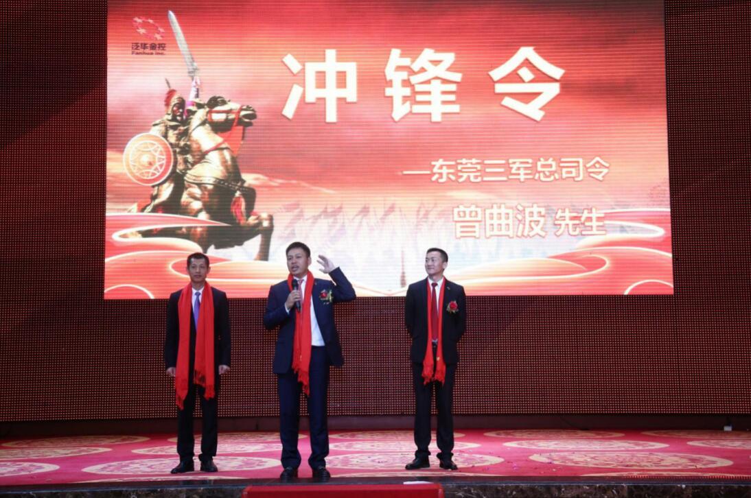 伟大的战役、伟大的成就,必然是由伟大的、无坚不摧的队伍所创造的。英豪雄姿英发,共同期待着上阵立功的荣耀。团队长们用力挥舞战旗,向总经理室也向团队将士表明誓达目标的决心。最后,曾曲波先生发布冲锋令!东莞三军战士出征开门红!出征2017新征程!浴血奋战铸辉煌!
