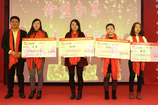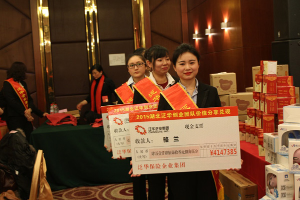 “让代理人赚更多的钱”是发展壮大团队的有效手段!代理人是泛华的群众基础,只有群众得到更多的利益,才能有更多的人关注泛华,相信泛华,并且愿意加入我们的队伍。财险和寿险团队在2015年的最佳获得者骆兰团队和汪利团队。