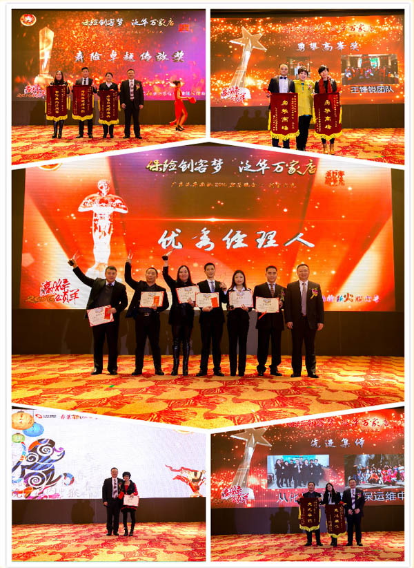 公司的发展离不开员工的努力,在业务一线涌现了一批杰出的销售团队,在后线涌现了一批默默工作、耐心细致的员工。为了表彰这批表现优异的伙伴,晚会现场对2015年南枫荣誉体系“枫火会”的各战线标兵进行了颁奖,奖项包括南枫之星、南枫新星、增才伯乐、杰出全面金融团队、杰出寿险总监、勇攀高峰、寿险件数王、寿险保费王、人力网者团队和销售网者团队等10个奖项。随后,晚会上还对在2015年公司发展中作出突出贡献的集体和个人进行了表彰,分别设立了服务明星、车险键盘手、车童巧帮手、寿险红旗手、优秀经理人、先进集体等六个奖项。获奖的伙伴们开心上台领奖。