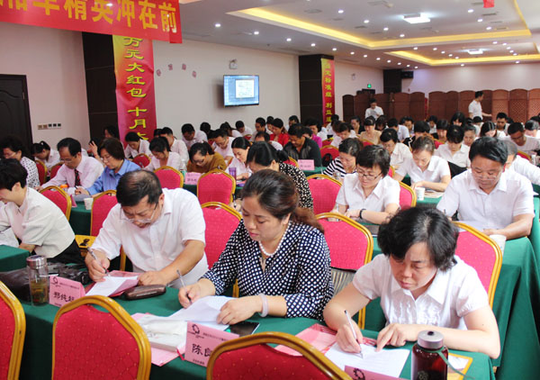 随着营销部陈柯经理走上讲台对“决战金秋 冲刺千万”十月方案宣导及运作部署,会议走进高潮,各个精英摩拳擦掌,精神抖擞,都争先恐后冲上讲台签署责任状;并以每人签下责任状拍照为证。最后湖南泛华总经理成辉旗走上台为决战金秋做战前总动员,在结束讲话后问了一声“王侯将相,宁有种乎”。