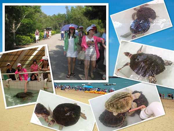 次日,伴着清风,穿过斑驳的树影,我们走进了亚洲大陆唯一的海龟自然保护区。海龟感觉到人多的热闹,变着戏法玩耍唯恐我们注意不到它们。我们一行人纷纷拿出手机、相机跟这些活跃的伙伴合影,也有人亲密地触摸海龟,这是一种别样的体验,日常生活中很难得有机会跟大自然的海龟零距离接触。