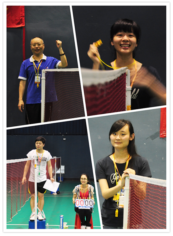 比赛现场气氛热烈非凡,选手们全副武装活跃在各个赛场,大家活力四射,激情澎湃,挑战自我,汗洒球场,羽毛球在空中你来我往。场下的拉拉队员们都热血沸腾,加油声此起彼伏。场上的裁判个个恪敬职守,一丝不苟。