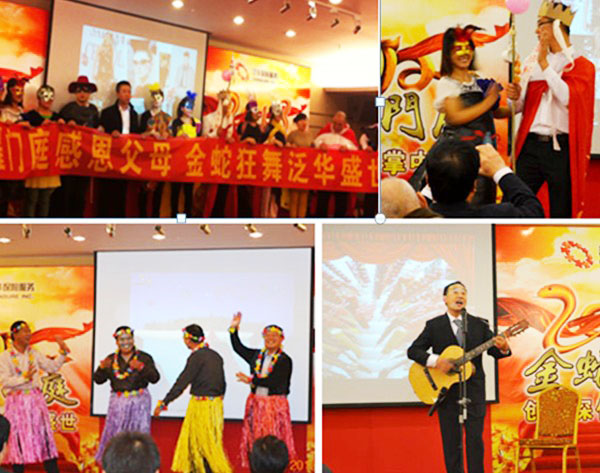 下午三点,“泛联一家亲”联欢会在一阵锣鼓声中上演了,一场感恩与个性的盛宴由此拉开:伴着与联欢会主题紧密相连的歌曲《感恩的心》,河北泛联总经理刘亚红女士点亮了第一支感恩的蜡烛;接着,大家心手相传,烛光照亮了整个会场。现场的父母亲收到了总经理室领导亲自送上的节日礼物,也收到了自己儿女送上的象征吉祥如意的红围巾以及深藏多年的温暖拥抱,真挚爱意不言而喻,会场弥漫着温馨的气氛。随后,大会进行了精彩的节目表演和丰盛的荣誉晚宴落下了帷幕。