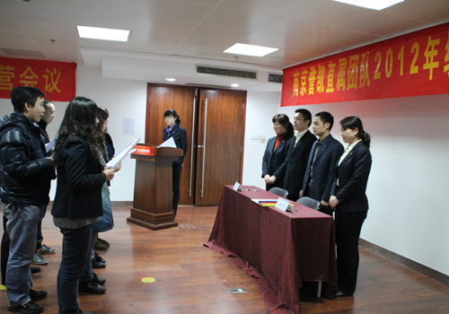 最后,全体直属团队负责人集体向总经理室宣誓保证全面完成各项任务指标。 直属团队是南京誉凯根据自身经营特色而打造的嫡系业务团队,经过将近一年的磨炼已基本成型,它是南京誉凯业务拓展的铁军。2012年直属团队绩效合约的承诺,将是南京誉凯经营目标达成的重要保证,也是认真贯彻落实集团构建全绩效经营管理体系的重要组成部分,它将为公司推进全绩效经营体系奠定了良好的基础!