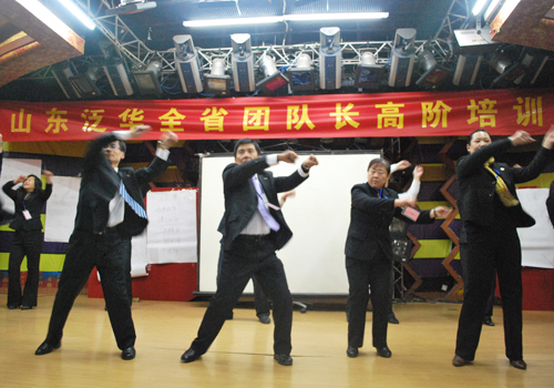 培训班上还穿插了丰富多彩的课间活动。课间带动、早会运作及教室和餐厅门口的迎宾都在展示着山东泛华团队长们的热情、积极、投入和参与。山东九个机构的平台长也全程参会,与团队长们心手相牵。