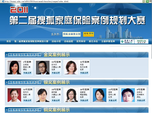 “第二届搜狐家庭保险案例规划大赛”是搜狐网站于2011年6月开始组织的主题活动之一,是广大网友、保险代理人、保险公司等三方互动的平台,特别突出“关注普通消费者的保险需求,为优秀保险代理人提供展现才华的平台,让性价比最高的保险产品脱颖而出”。此项年度赛事规模大、参赛作品的水平高,受众层面广。大赛通过网络报名及保险公司推荐报名、家庭保险案例分析、网友票选,和保险代理人提交的规划案例中选拔出前80名,进入专家评审阶段。由清华大学保险系主任陈秉正教授、北京工商大学保险系学主任王绪瑾、中国社科院金融研究所所长助理郭金龙等组成的专家评审委员会,经过最终审核,在全国范围评选得出金牌案例3名、银牌案例5名、铜牌案例10名、入围奖案例30名。此次活动也得到了泛华集团品牌部和泛华联兴总公司营销培训部的大力支持,在泛华联兴的推广下,泛华全国各地机构的代理人伙伴积极报名,踊跃参加。最终,田孝俊脱颖而出,代表泛华保险服务集团参加与众多保险公司精英代理人的方案PK。