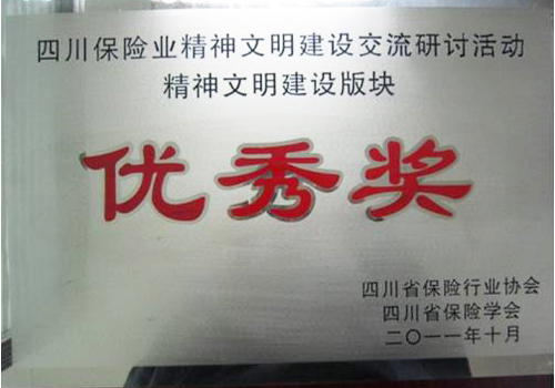 2011年10月26日,《四川保险业精神文明建设交流研讨暨颁奖大会》在成都国际会展中心成都厅隆重举行。我公司作为四川省保险专业中介机构唯一一家获奖企业,荣获了由四川省保险行业协会颁发的“四川保险业精神文明建设优秀奖”。泛华财险集团总裁助理、四川泛华总经理李庆女士参加了此次会议,并领取了奖牌。