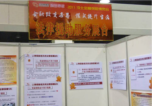 在法律援助展台,由河北天捷律师事务所的律师团免费提供现场的咨询,他们是河北泛华的法律顾问团,有任何法律纠纷都可以现场向他们咨询,同时一旦出现保险纠纷时,他们会在第一时间站在客户的立场和角度,去帮助客户争取到属于他们的应有利益。