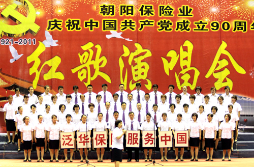 在这和风徐徐,百花盛开的六月,辽宁泛华阁纳保险代理有限公司朝阳分公司来自不同市县的三支团队组建了63人参加的“红歌演出团”,参加了朝阳市委、市政府倡导的、市行业协会组办的“朝阳市保险行业庆祝中国共产党建党90周年红歌演唱大会”。本次活动共有21家单位参与,其中包括19家保险公司和2家代理公司参加演出。