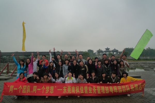 3月19日上午8点半,东莞南枫佳誉保险代理有限公司业务管理部组织35名部门员工到东莞粤晖园进行拓展训练。