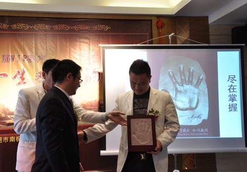 “海外试驾飞机”是为高品质生活推出的第一项活动,嘉宾们对这项新颖的征服蓝天的活动表现出了强烈的兴趣,当场就有17位嘉宾加入了公司组织的“畅享一生”VIP俱乐部,且为保证畅享高品质生活需所专款,当场签约理财产品305万元。兀总为这17位嘉宾一一送出了代表泛华尊贵客户的“金手印”,把酒会的气氛推向了高潮。