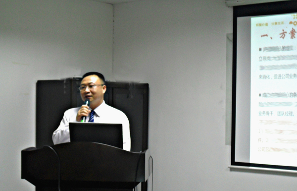 会议邀请了陈海珍总为“公司业务”进行宣导,陈总凭借着自身多年的工作经验和阅历,结合现今保险市场发展状况,依据泛华财险集团2011年经营工作部署,从平台建设、发展目标等方面,对“公司业务”作了透彻、深入的分析和讲解,指导广东泛华南枫有目标、有方向地选择其中一种或多种方式发展,并应相关制定配套政策,有行动、有计划地执行。陈总全面、精辟、透彻的讲解,为广东泛华南枫2011年公司业务发展提供了行动指引和启发。