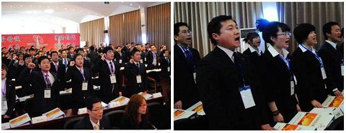 寿险营业集团刘全杰副总裁为二期组训班授旗,最后,班长李长阔接过授旗,并带领全体同学向集团领导庄严宣誓。