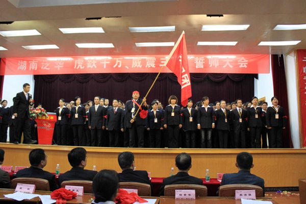在誓师会上, 敢为人先的湖南泛华人提出“年末大会战,冲刺一千万”的战斗口号。是时候了!是要大干一场让市场震撼了!目标一经提出得到全体湘军将士的热烈响应。