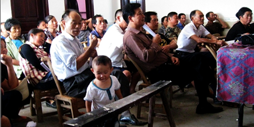 桃源县盘塘乡农民聚精会神听保险和农业知识