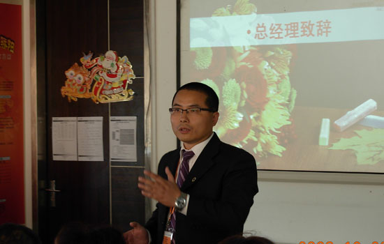公司总经理戎霖发表了《绑在一起》的演讲,用众草根只有绑在一起才能达到“野火烧不尽,春风吹又生”的境界,宣布了上海泛华在09年第四季度将正式告别旧格局,迈向新时代的举措。戎总同时也对上海泛华内勤工作提出了高标准的要求,在戎总的带领之下,所有内勤员工逐一上台介绍了自己和将要为代理人服务的内容。