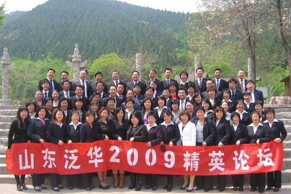 2009年4月26日至28日,山东泛华精英俱乐部2009一季度精英论坛在济南蟠龙山成功举行。来自全省的业务精英、各机构负责人和优秀团队长共70余人参加了此次论坛。论坛特别邀请河北泛华邯郸分公司陈迎春总经理进行了精彩演讲。中英、生命、阳光和信泰等合作保险公司总公司及山东省分公司经代部负责人也纷纷到会进行了精彩发言。专属产品“华丽人生保险计划”隆重启动,让此次精英论坛分外热烈。