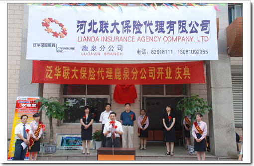 在河北联大鹿泉分公司成立仪式上,河北管委会主任薛凯指出:泛华保险服务集团在2007年10月登陆美国纳斯达克全球市场,成为亚洲第一家在全球主要资本市场上市的保险中介企业。希望联大保险代理鹿泉分公司始终树立“朴实、包容、分享、卓越”的泛华价值观和“价值创造,成本领先”的泛华经营理念,以一流的管理、一流的服务、一流的品牌、一流的信誉服务于广大客户,服务于社会,不断强化诚信、创新、奋进、卓越的企业精神,始终坚持对公司尽职、对保户尽责,对员工尽心,对社会尽力的工作理念,努力开拓保险市场,为鹿泉的经济发展和创新和谐鹿泉做出自己的贡献。