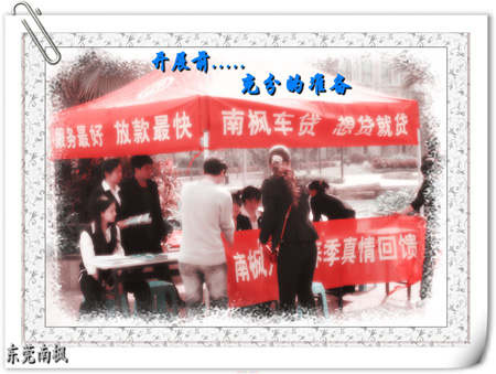 2008年3月2日下午,东莞南枫佳誉保险代理有限公司携手兄弟公司泛华金融服务集团旗下广东南枫财务服务有限公司东莞分公司的员工们来到了东莞城区的高级小区蔚蓝星湖和稻花村,举办了以“新春献真情,服务进小区”为主题的推广活动,为客户提供了全面、便捷的服务。