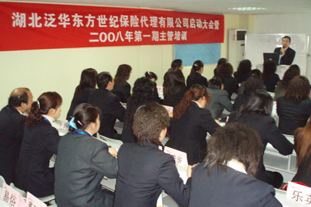 2008年1月,湖北东方世纪保险代理有限公司正式纳入泛华保险服务集团旗下,并更名为湖北泛华东方世纪保险代理有限公司,在兄弟公司协作下,湖北泛华东方世纪保险代理有限公司2008年第一期主管培训班暨誓师动员大会正式启动。
