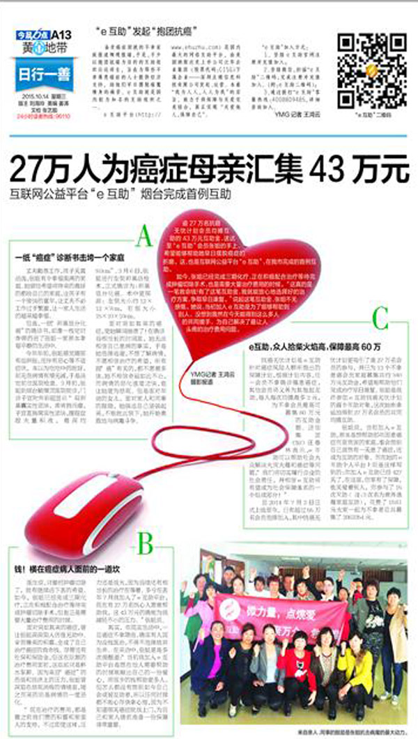 互联网公益平台“e互助”烟台完成首例互助