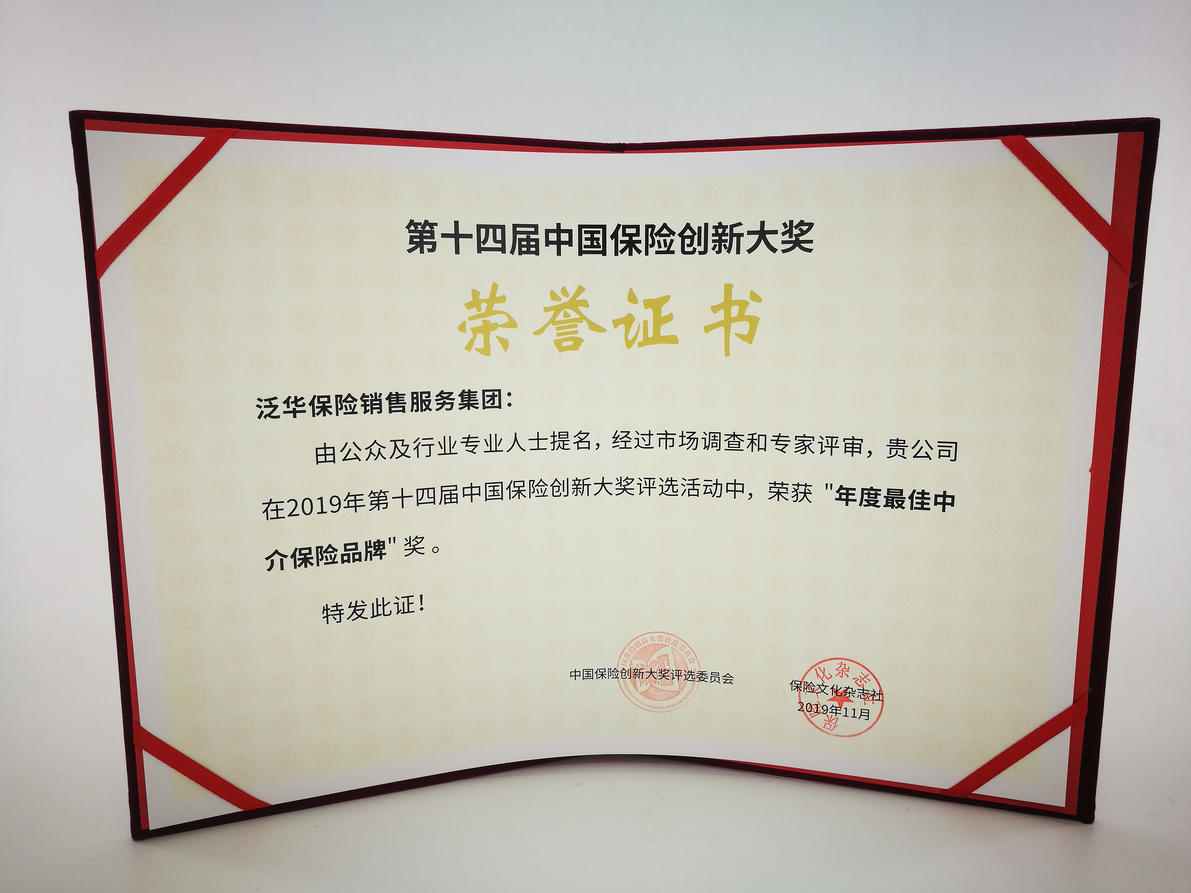 泛华保险荣获“2019年度最佳中介保险品牌”奖