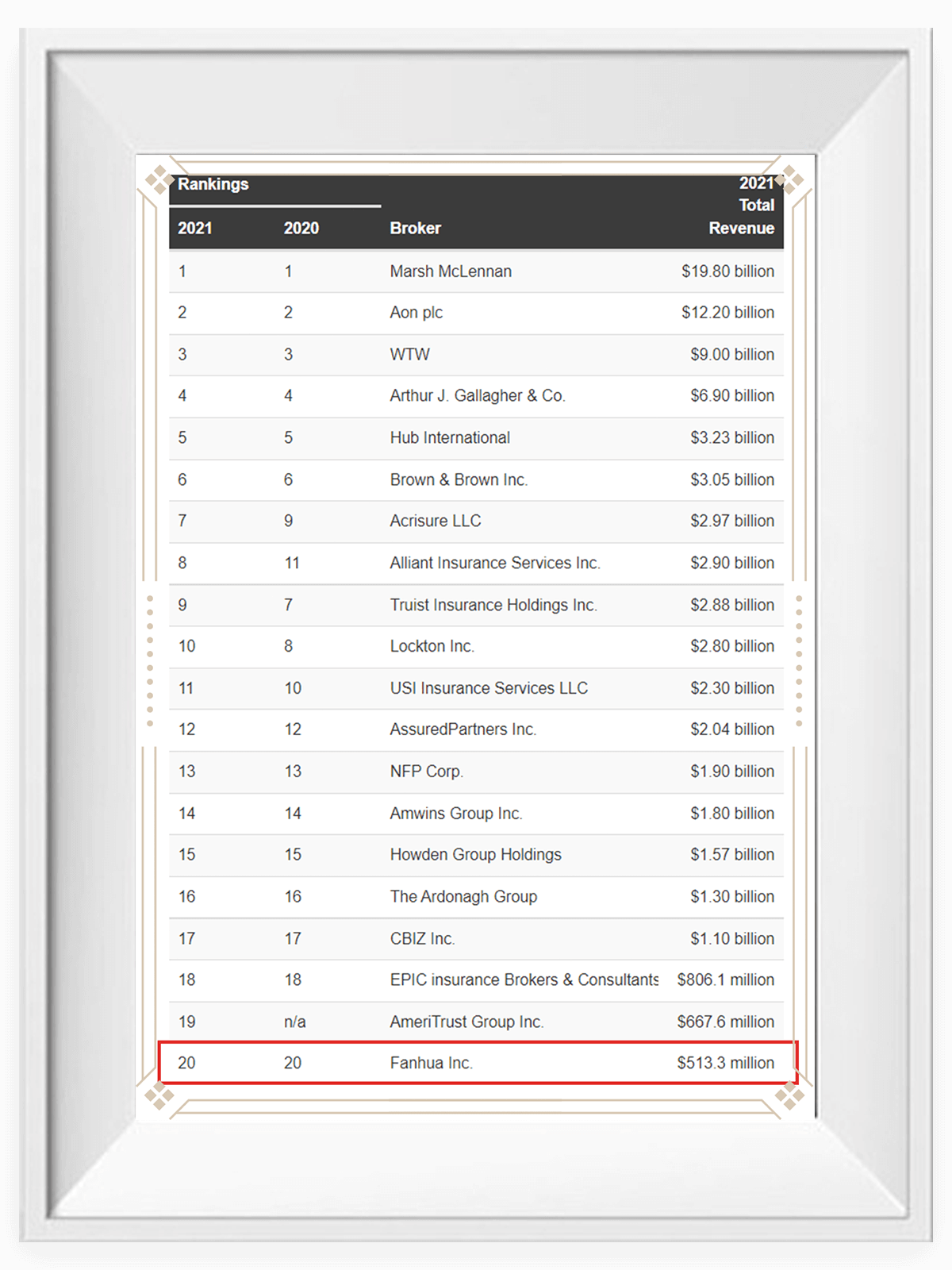 泛华入选国际权威评级机构贝氏《全球顶级保险经纪商排名- 2023年版》,位列第19名